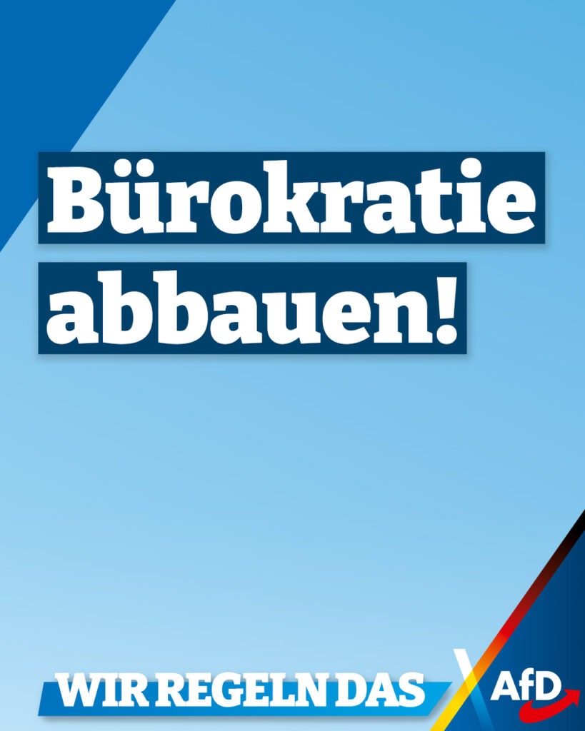 Bürokratie lähmt unsere Kommunen, unsere Unternehmen und am Ende jeden einzelnen Bürger. Wir stehen für konsequenten Bürokratieabbau.