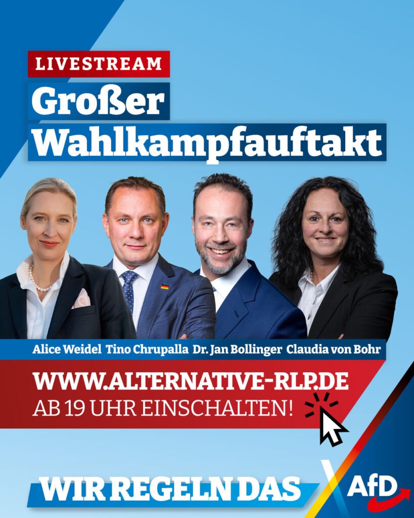 Die AfD Rheinland-Pfalz startet mit einer großen Spitzenveranstaltung in den Wahlkampf. Wir übertragen im Livestream!